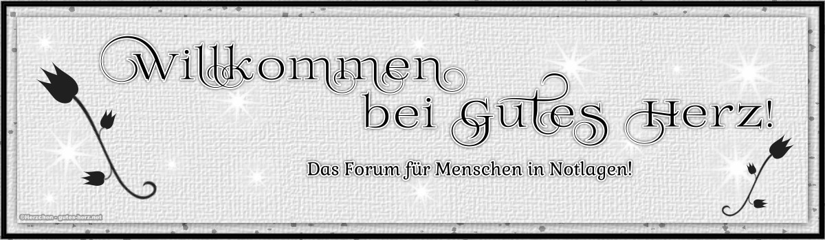 Lieber Besucher, herzlich willkommen bei: Gutes Herz Forum. Falls dies Ihr erster Besuch auf dieser Seite ist, lesen Sie sich bitte die Hilfe durch. Dort wird Ihnen die Bedienung dieser Seite näher erläutert. Darüber hinaus sollten Sie sich registrieren, um alle Funktionen dieser Seite nutzen zu können. Benutzen Sie das Registrierungsformular, um sich zu registrieren oder informieren Sie sich ausführlich über den Registrierungsvorgang. Falls Sie sich bereits zu einem früheren Zeitpunkt registriert haben, können Sie sich hier anmelden.